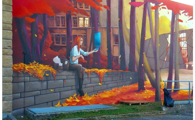 Cette fresque est l’œuvre des graffeurs brestois Pakone et Wen2. Elle est financée en partie par l’Université, en partie par "Bellevue fait le mur" : en savoir plus sur WikiBrest.