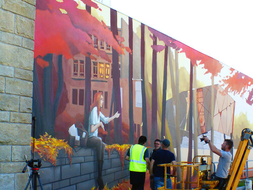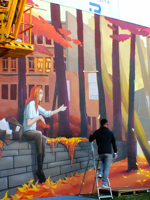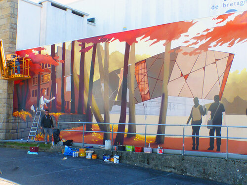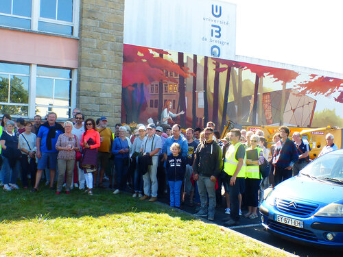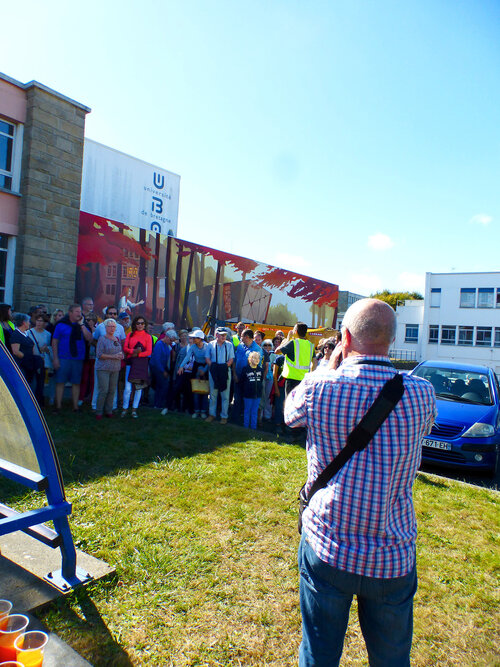 Dimanche 16-09-2018, à l’occasion des Journées européennes du patrimoine, un groupe d’une soixantaine de personnes a pu admirer la fresque en cours de réalisation sur un des murs de l’université, visible de l’avenue Le Gorgeu.